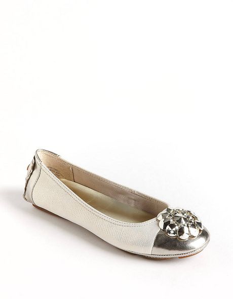 Ann Klein Ballerina Flats. These graceful, quintessentially feminine ballerina flats are adorned with delicate bow details and polished metal tips, and they feature a quilted footbed and. Elastic ankle , zip at heel, very comfortable.