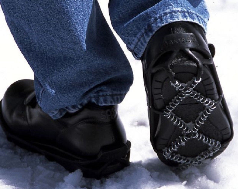Prevent slipping on ice and snow with these ice cleats for shoes and boots and make winter walking on roads, sidewalks, pathways, safer by wearing these anti slip shoe grip that gives you traction on ice and snow.